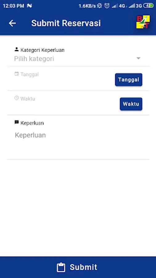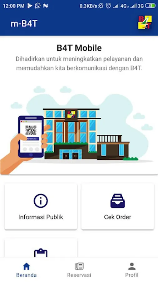 B4T Mobile (m-B4T) is a form of DILAN (Digitalizing Services) from the Central for Material and Technical Products (B4T) that can help you make reservations and transactions for B4T services through your smartphone.