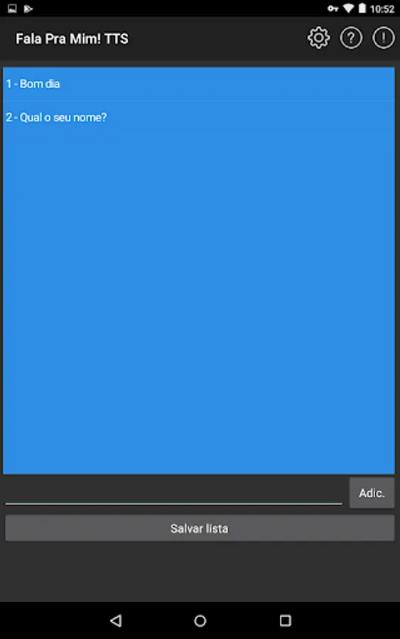 Tell me! TTS is a talker application that will help you convert text into voice. All lines can be saved in a list, making it easier to drive the voice.