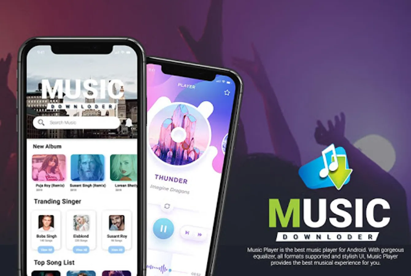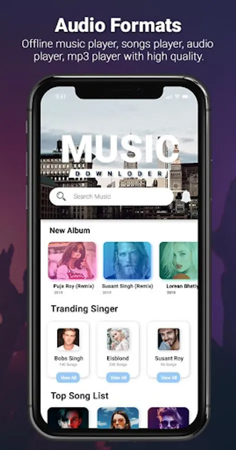 "Free Music Downloader" is a free music player and mp3 download application that allows you to download or play most prominent free music songs.