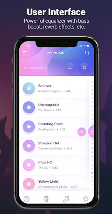 - Search and play your songs and mp3 music records by playlists, songs, collections, specialists and organizers