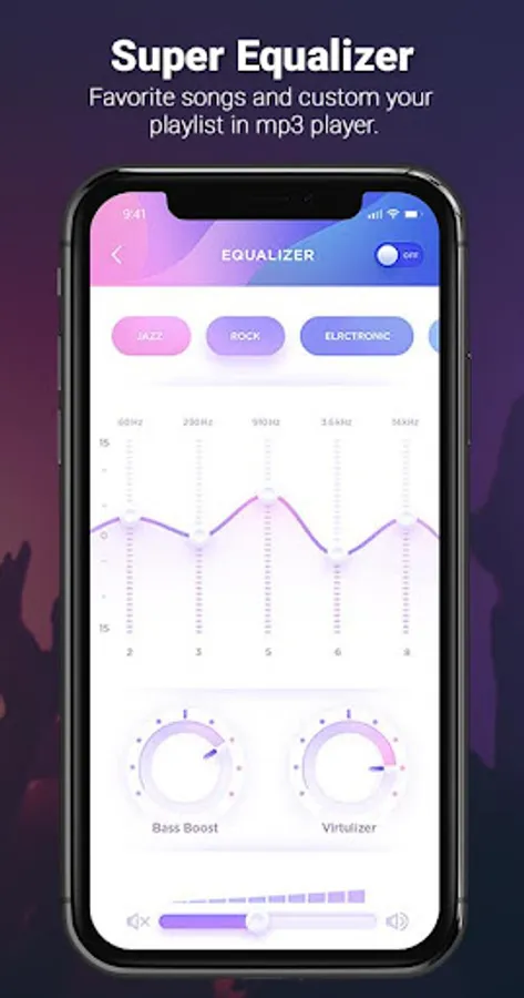 - Powerful equalizer including Normal, Hip Hop, Jazz, Rap, Rock, Dance, Pop, Latin, Metal, Flat and Classical