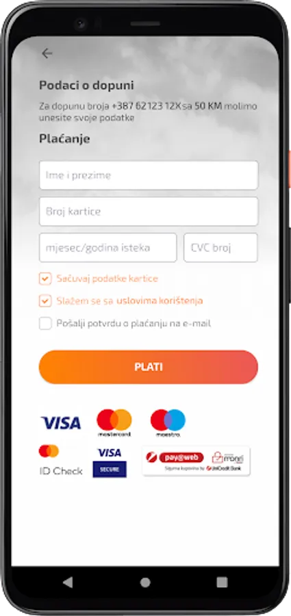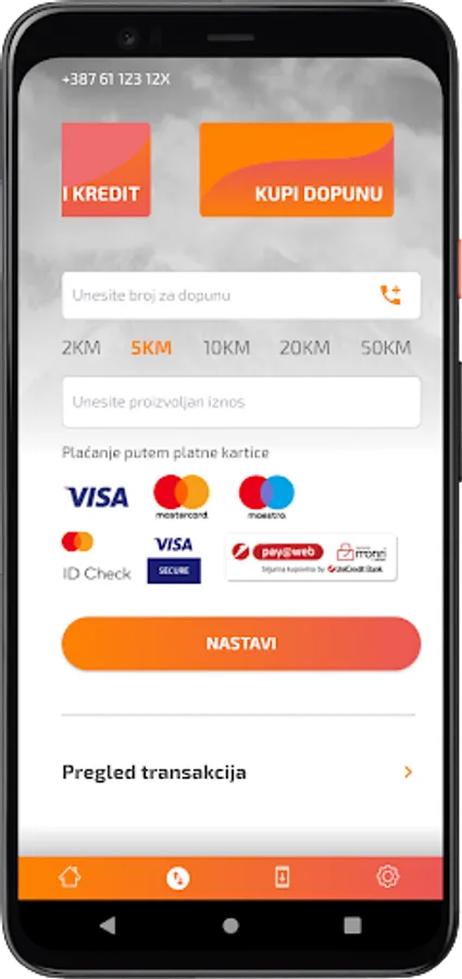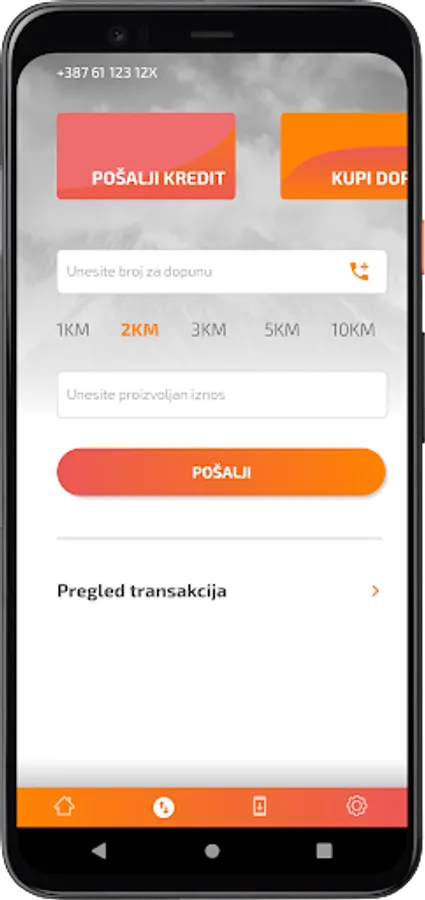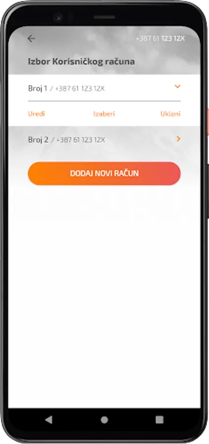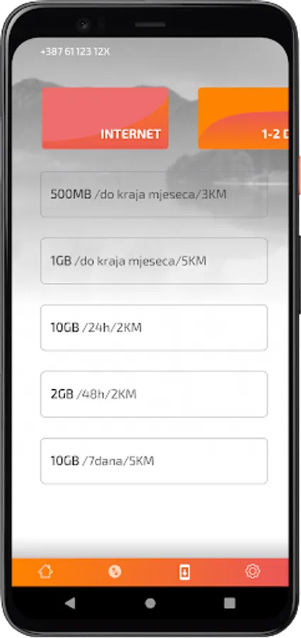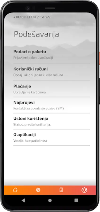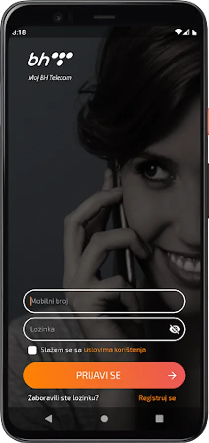 The mobile number and password are entered only when the application is first started. The existing BH Telecom portal password (https://www.bhtelecom.ba) is used or a new one is generated through the Registration process.