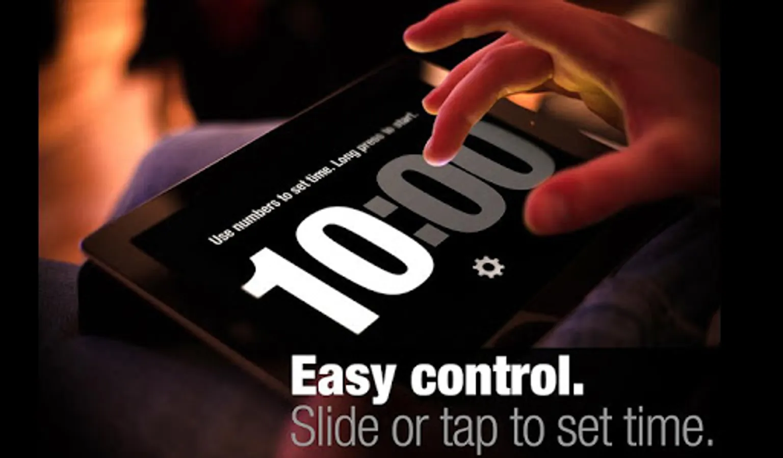 ● Easy control. Swipe & tap to set your time in seconds.