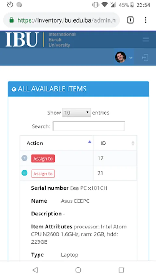 Inventory system for all IBU employees. In this system users can check equipment that they are using.