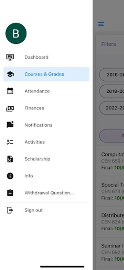 App for students of International Burch University that all necessary details related to courses, exams, grades, attendance and any other, student related, information.