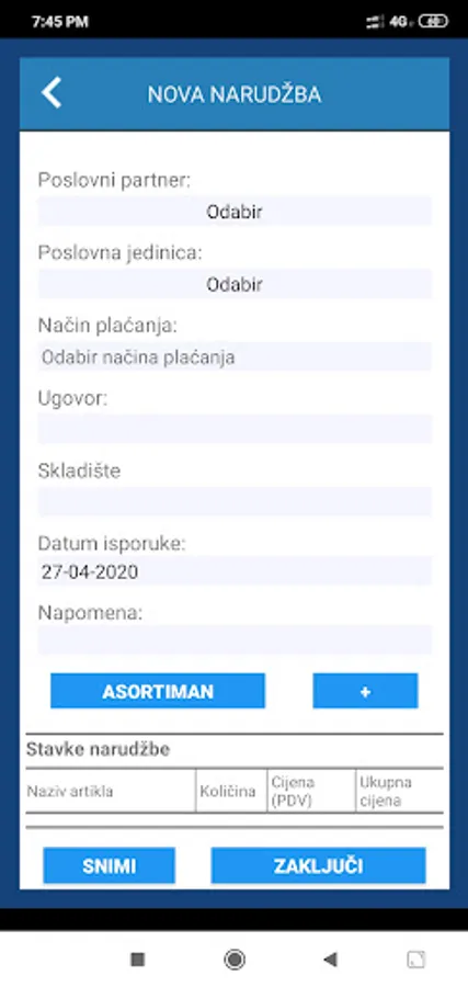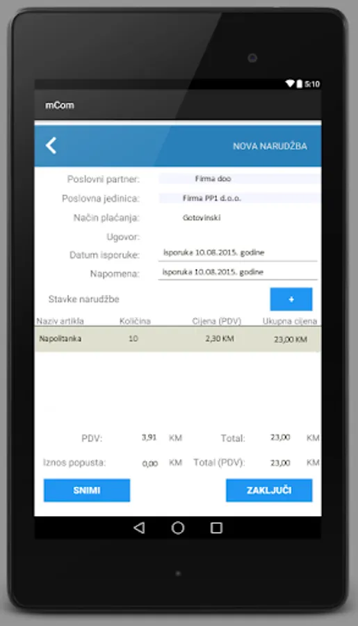 The salesperson has information on items, available quantities, prices and customer information. Overview of all previous open and closed orders, turnover, open items. Communication is via the Internet and order processing is also possible in OFFline mode. Data synchronization is performed immediately after connecting to the system. . This application works strictly with the ImelBIS ERP system.