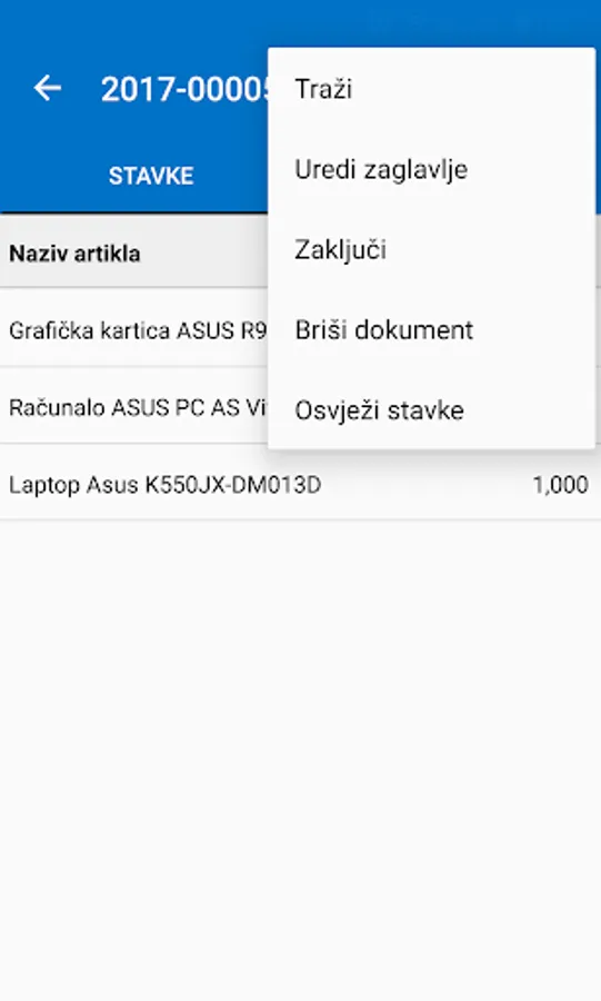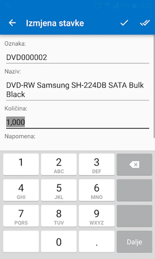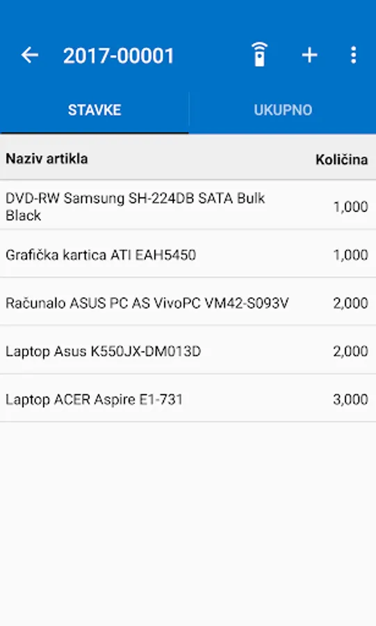 The items are entered manually or by scanning a bar code through the built-in camera on the android device.