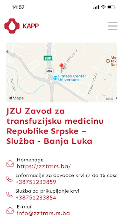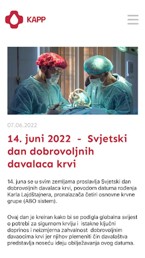 Aplikacija KAPP je orijentisana na kreiranje novog, pouzdanog kanala za komuniciranje između Zavoda za transfuzijsku medicinu Republike Srpske i dobrovoljnih davalaca krvi, te popularizaciju ovog čina i promovisanje njegovog humanog karaktera.