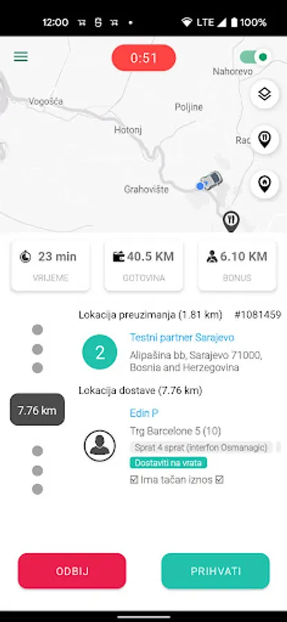 Super stvar je što kad god aktiviraš aplikaciju, narudžbe ti same dolaze, a zarada je po satu i po svakoj dostavi. Bakšiš je naravno samo tvoj.