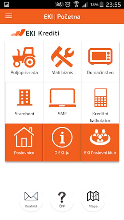 EKI je jedna od vodećih mikrokreditnih organizacija u Bosni i Hercegovini, sa 68 poslovnica i preko 250 zaposlenih. Krediti i usluge iz naše ponude imaju za cilj pokretanje i unapređivanje poljoprivrede, malog biznisa i obrtništva. Sa ciljem konstantnog napredovanja, prateći trendove uspješnog poslovanja, EKI je uveo dodatnu uslugu za korisnike u vidu EKI mobilne aplikacije.