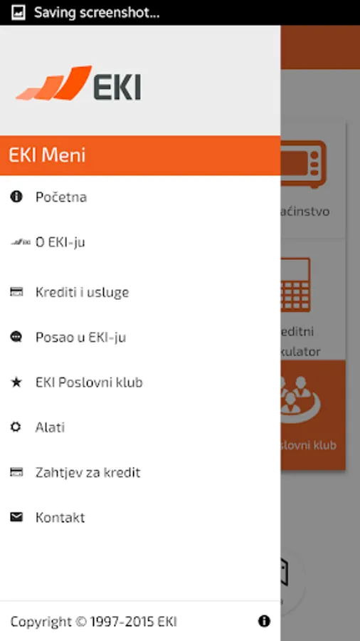 EKI mobilna aplikacija je besplatna dodatna usluga u okviru projekta EKI On-line pokrenuta sa ciljem da se klijentima i svim zainteresovanim pruže aktuelne i korisne informacije. EKI mobilna aplikacija vam omogućava da, putem vašeg Android mobilnog telefona, u svakom trenutku i na svakom mjestu budete informisani o EKI kreditima i uslugama.