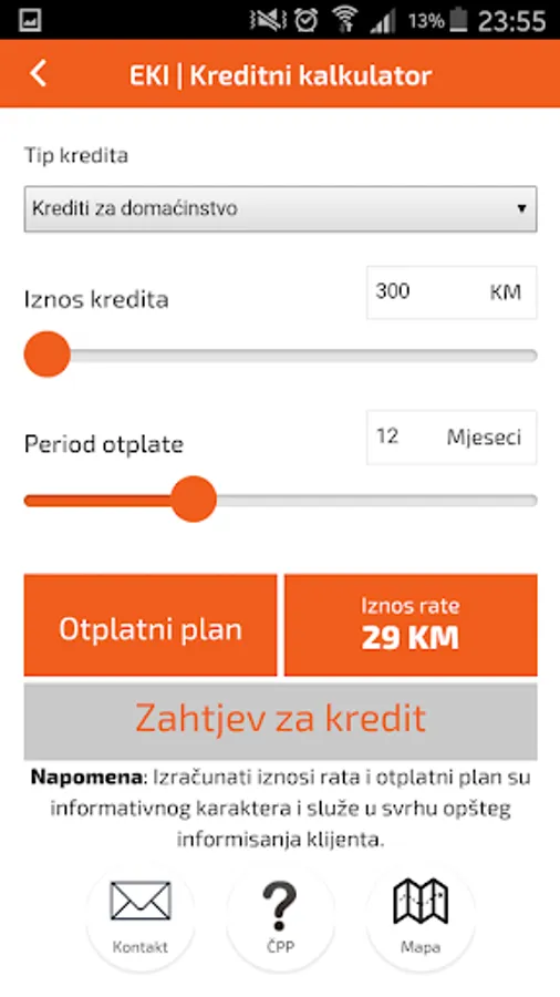- Detaljne informacije o kreditnim proizvodima (iznos, rok otplate, troškovi obrade, tabele sa primjerima rata);