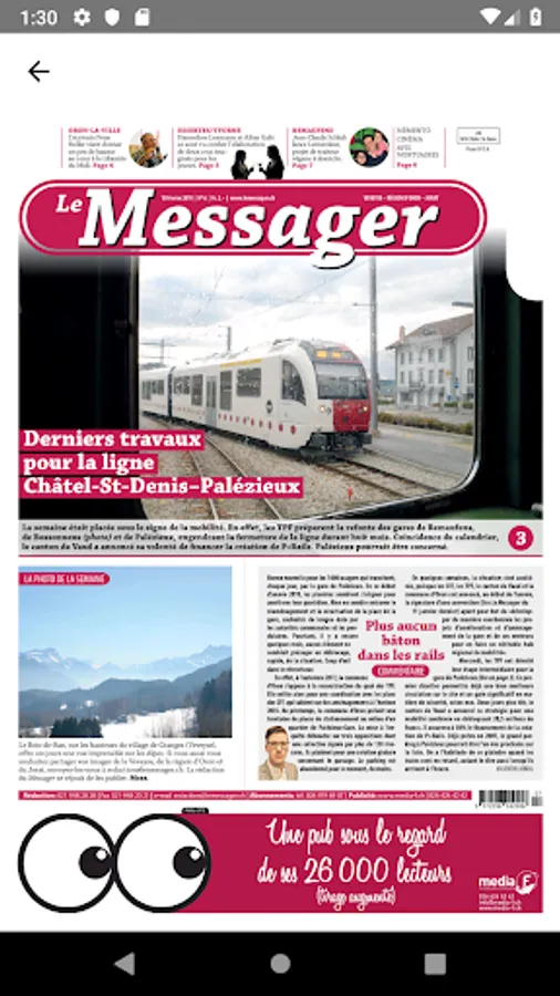 Regional weekly newspaper, Le Messager is a rich newspaper of two cantons, centered primarily on the Friborg district of Veveyse and Vaud district of Lavaux-Oron.
