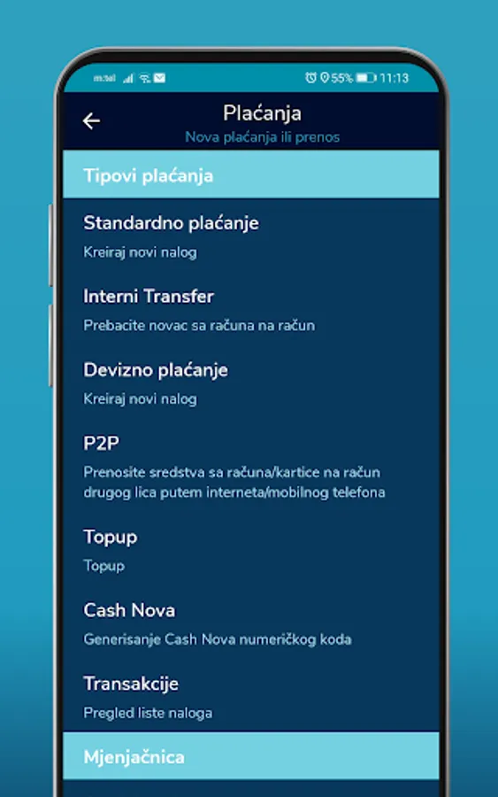 - mjenjačnica koja će omogućiti mjenjač za sve valute koje se nalaze na kursnoj listi Banke;