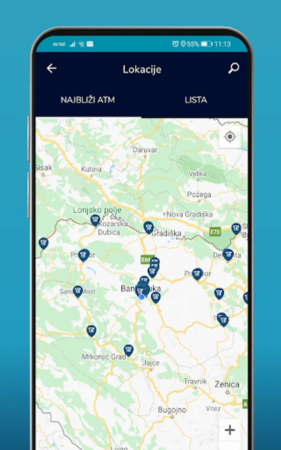 - locirajte najbližih poslovnica ili bankomata Banke;