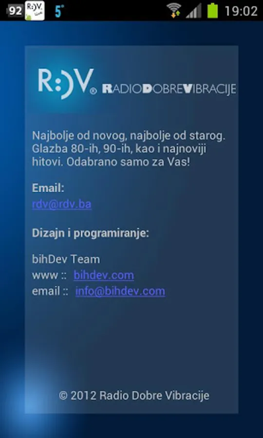 Radio Dobre Vibracije - Mostar. Music of '80s '90s and latest hits. Best of POP and Rock music. Listen live stream and Like your favorite song.