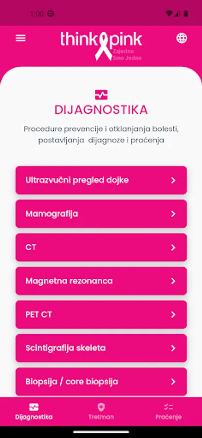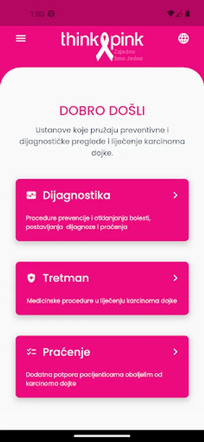The goal of the application is to enable easier and faster access to information about health institutions that offer services of a medical nature, but also to familiarize with the services offered by associations of women suffering from and treated for breast cancer throughout Bosnia and Herzegovina. This application contains information about institutions, services and treatments that are carried out in them and whose primary task is to take care of your health.