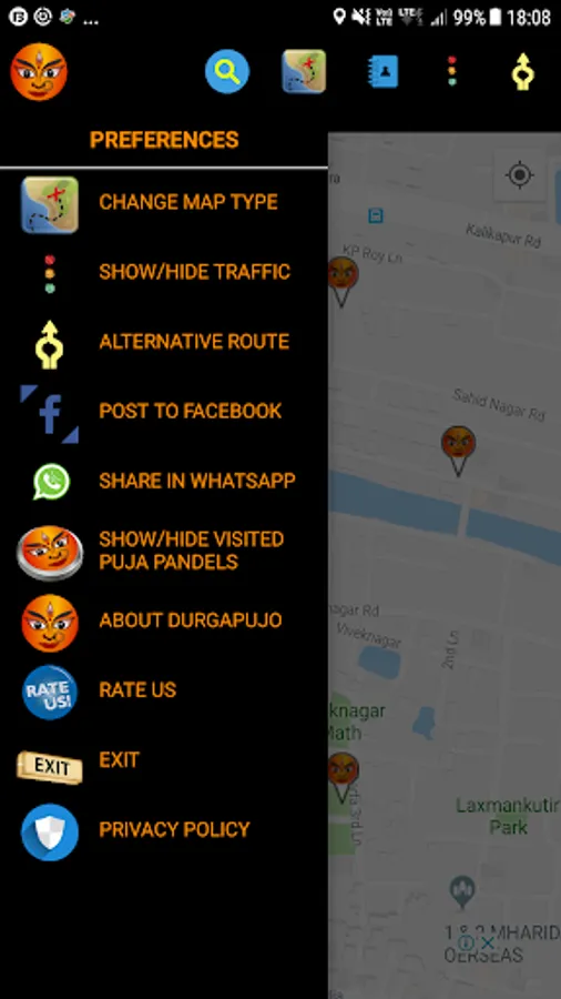 you can also search from the puja list and click on the desired name to get the location and route by clicking on the third button;