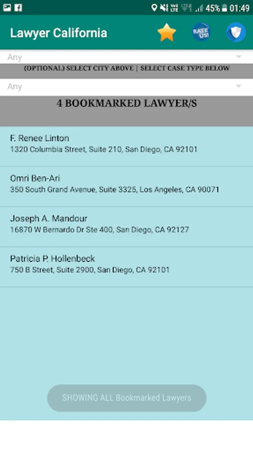 you can also add/remove lawyer to your favorites list, in order to get their details handy.