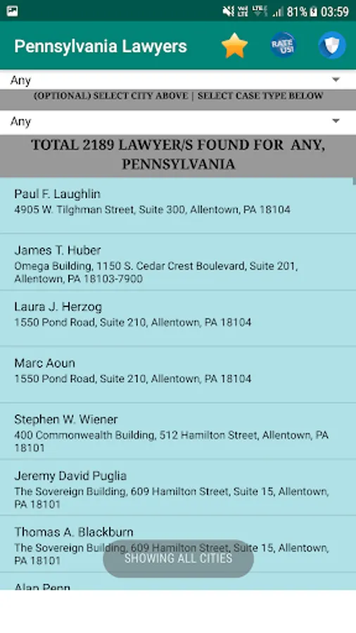 Around 2189 Lawyer / attorney and ag details covering entire Pennsylvania.