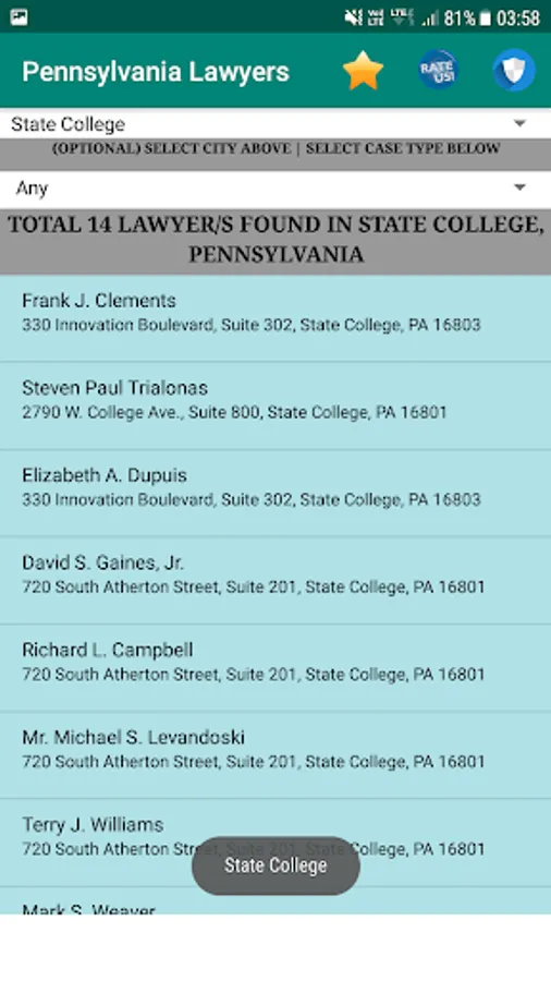 you can also add/remove lawyer to your favorites list, in order to get their details handy.