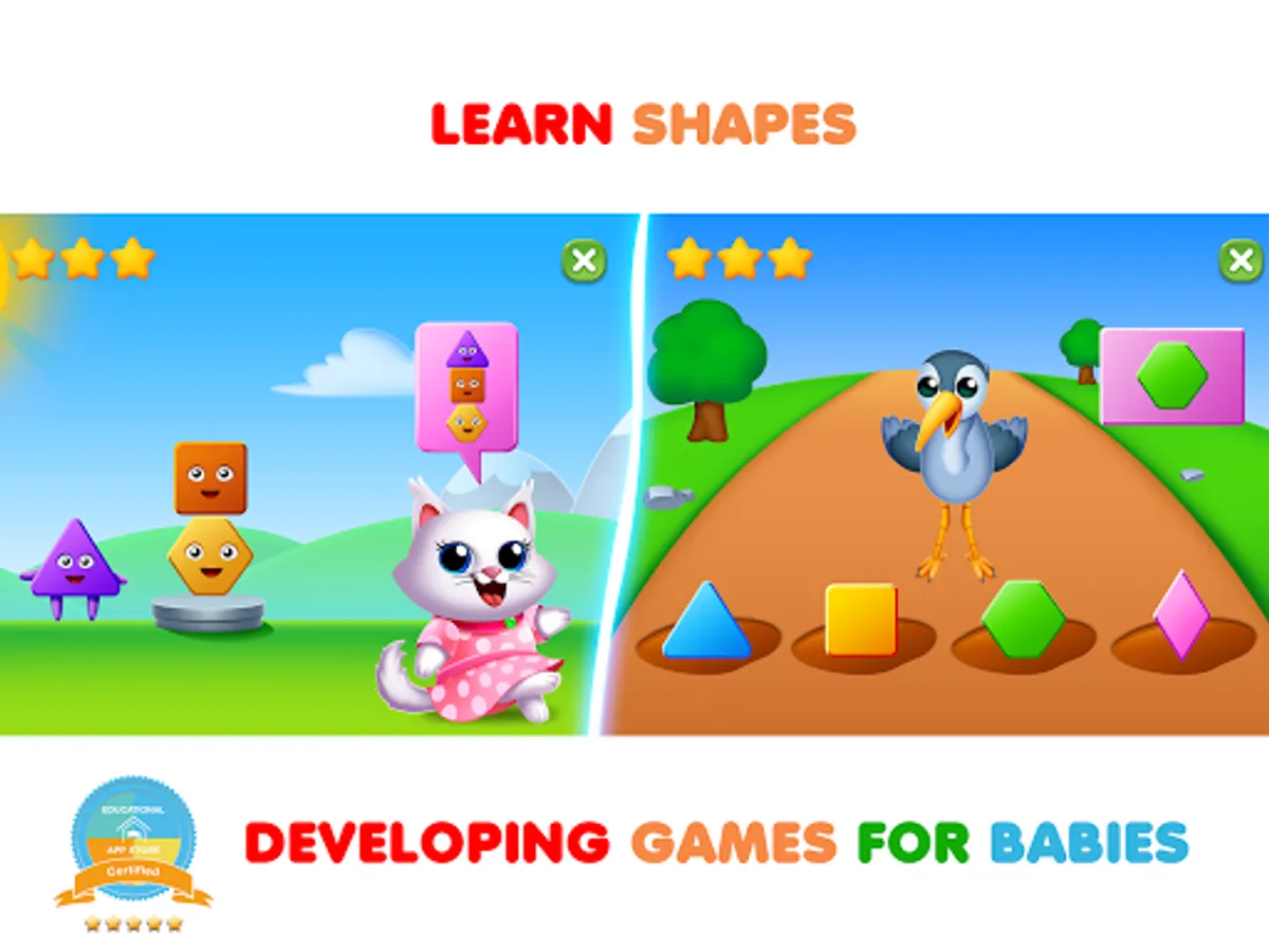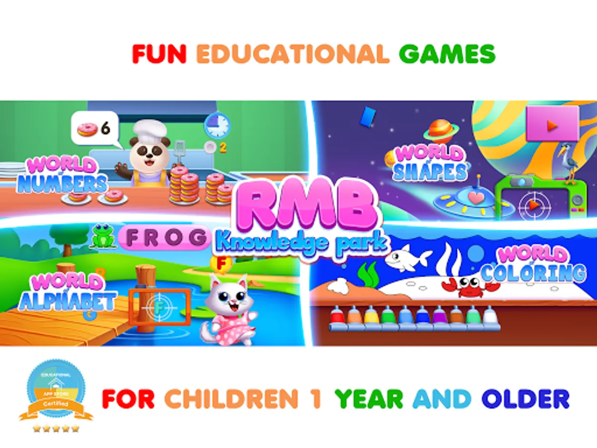RMB Games – Knowledge Park 1 redefines toddler games by an impressive showcase of free alphabet, numbers, color learning and shape games. These games are perfect for 1, 2, 3, 4, 5 and 6 year old kids. Preschool learning has never been so easy and fun!