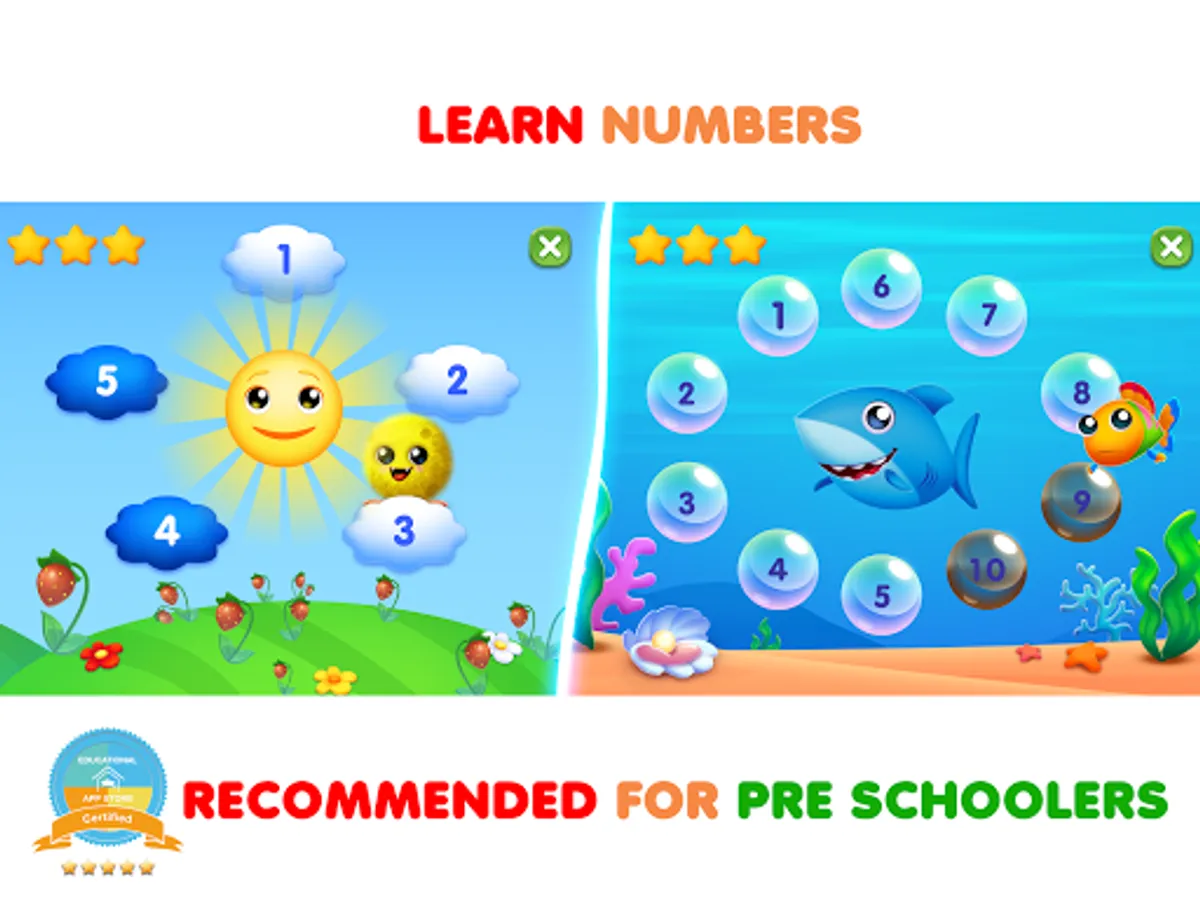 Kids will discover many places for interesting learning in our 1, 2, 3, 4, 5 and 6 year old kids games: