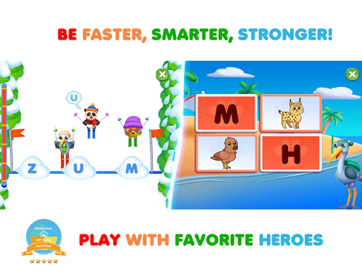 • "Extreme Ski Race" – slide down a steep and beautiful slope, quickly find the correct letter of the alphabet and try to win the race!
