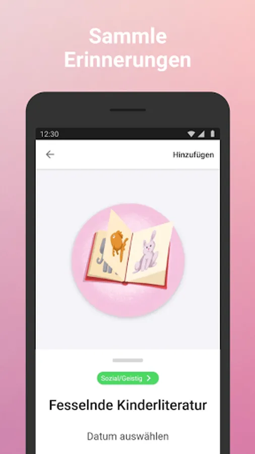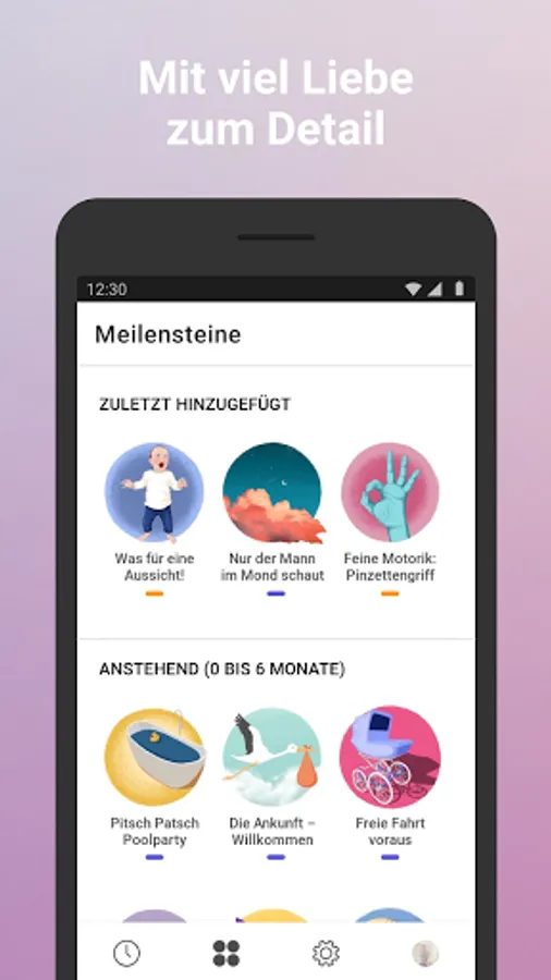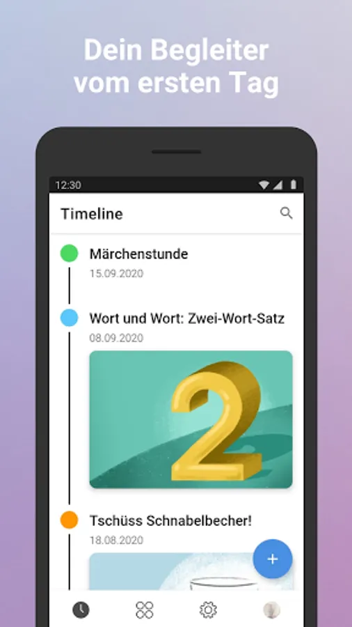 Meilim is very easy to use and so much fun! As soon as you have entered your baby in the app, you are directly in his timeline and ready to go. Whether the first porridge or the first tooth, create a new milestone in the app, give it a title and a date. In addition, you can enter text, attach pictures or videos and tap on “Add”: The new milestone is immortalized on Baby's timeline.