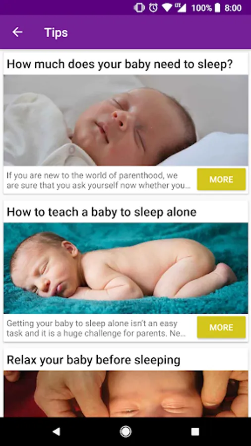 3.- Articles and tips: We have prepared and composed some interesting articles. Some things you will learn: tips to get you baby quicker to sleep, how many hours your baby needs to sleep, how to educate your baby to sleep alone, etc.