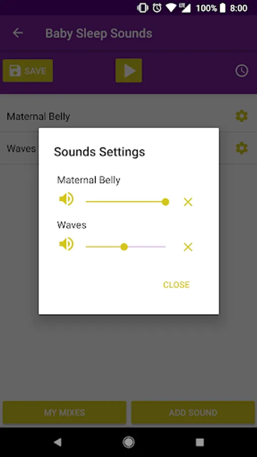 2.- Sounds generator: If you are looking for good relaxing music for babies, a great idea will be to create your own collection of sounds. With our tool, you can add different sounds to create your customized creations. We could say that it is some kind of white noise generator with a lot of soothing music sounds to choose from: nature sounds, maternal womb sounds, etc.