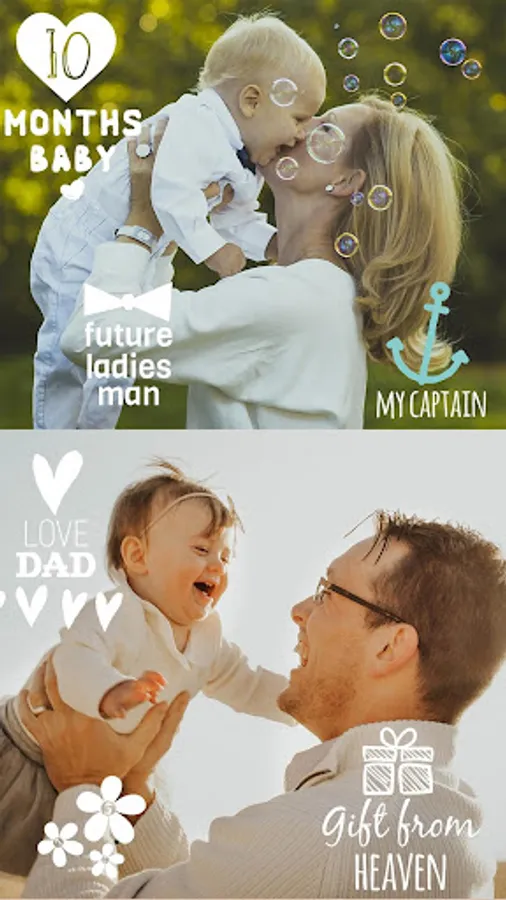 BABY ART PHOTO STUDIO, BABY PHOTO BOOK STICKER EDITOR AND BABY STORY PHOTO APP. Choose a perfect baby's first year photo frame for boy or girl - new born baby boy photo frame or my sweet baby girl photo frame and add some beautiful baby stickers for pictures - baby milestones month to month markers and stickers for 1st birthday party. Create most precious memories with your children - from pregnancy announcement to first birthday party. Beautify pictures with colorful text on photo, cool photo stickers, lovely newborn picture frames and more. Baby story pics editor 2020 with stickers for pictures baby story maker, kids frames for pictures, name writing on photos and picture decorations.
