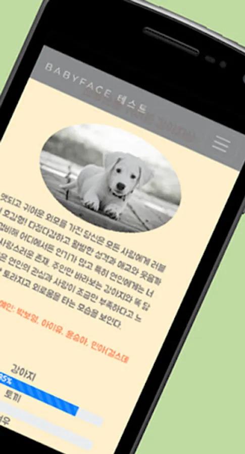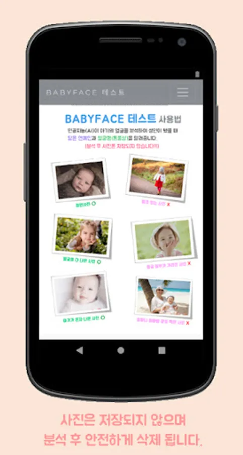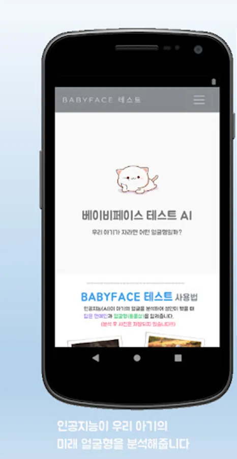 Based on the learned photo data, it is an app that informs the celebrity and face shape that the baby looks like when he grows up.