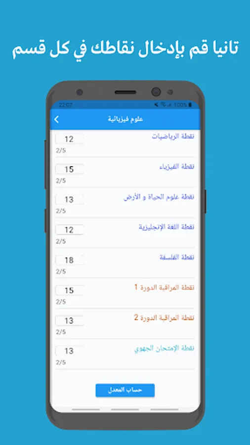 Calculating the rate of the Moroccan baccalaureate by entering the required points for each specialization and obtaining the rate in a quick and easy way