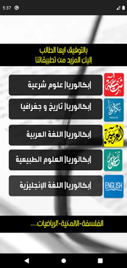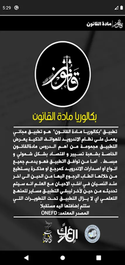We have developed the implementation of the application specifically for baccalaureate students, especially the Department of the administration and economy of the law, it contains all the lessons adopted by the Department of Education and other aspects such as training on the remote ONEFD, the source has been adopted the latter, the National Bureau of Education and Training A distance of the Ministry of Education
