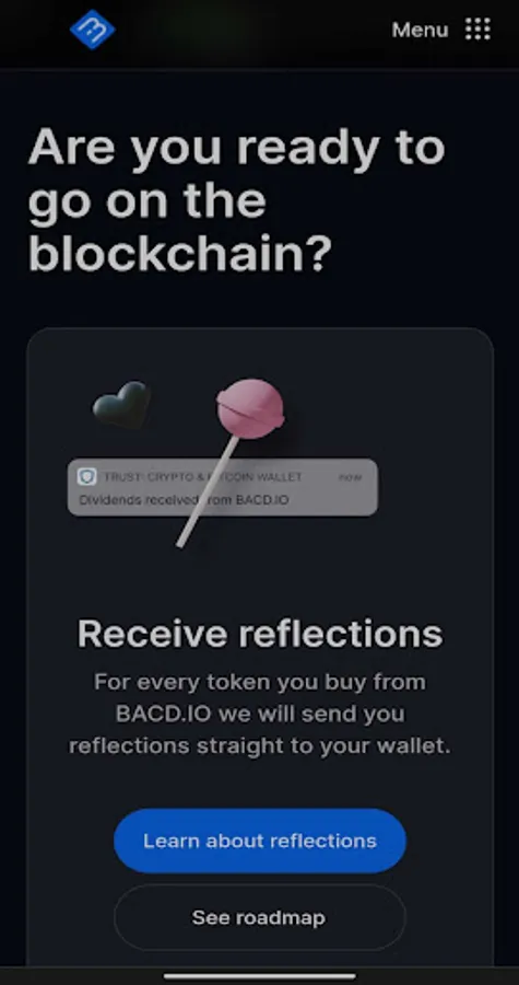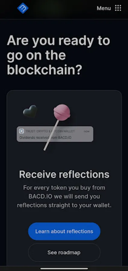 BACD.IO helps everyone to take control of their wealth and health. It all starts with installing your crypto wallet and getting your BACD2 tokens.