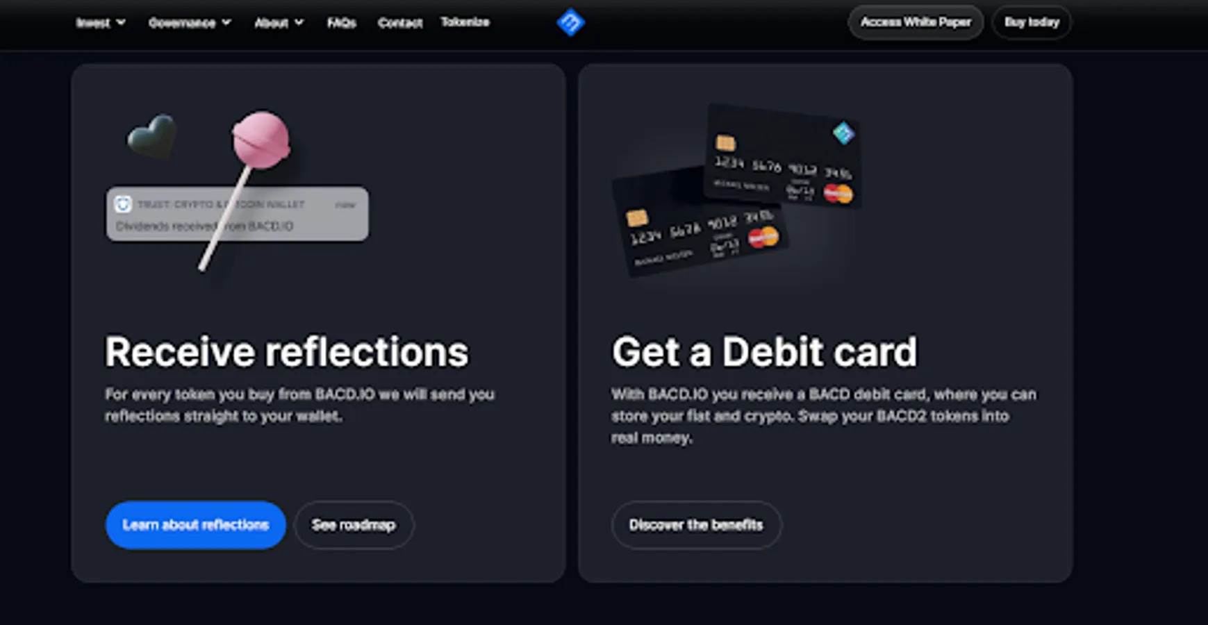 BACD2 token: Used for companies to make their own tokens and for holders to get daily reflections and voting rights