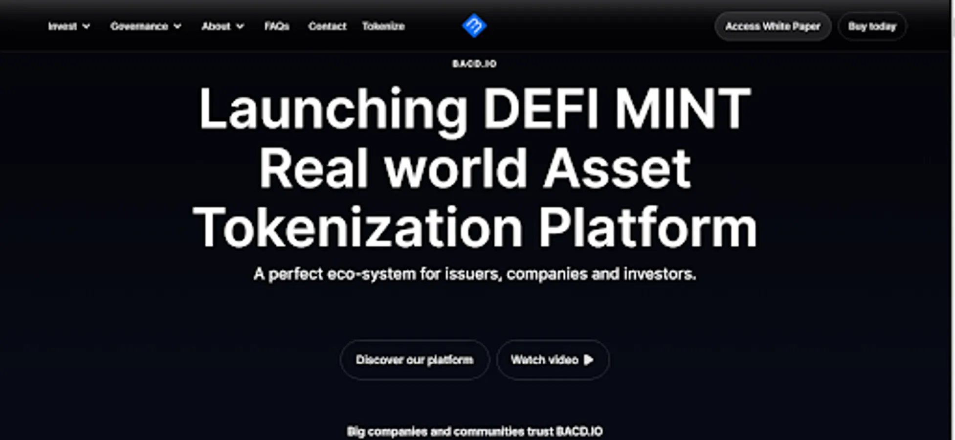 Launching DEFI MINT Real world Asset Tokenization Platform A perfect eco-system for issuers, companies and investors.