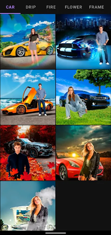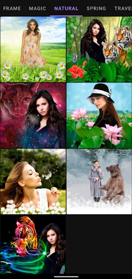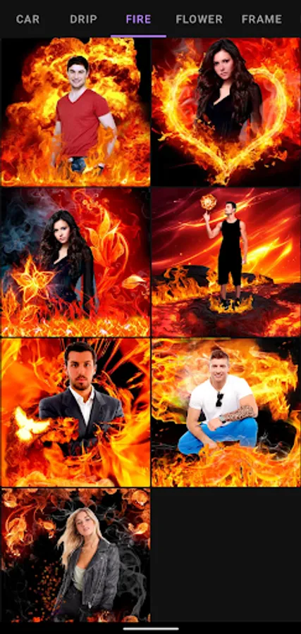 There is a lot of templates available from different categories: fire, car, drip, flower, frame, natural, spring, travel, etc.