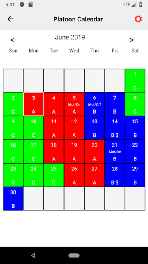 -Platoon Schedule/Calendar with Pay Day & ability to add notes (Shift Calendar)!