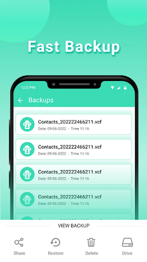 My contacts backup application create VCF (virtual contact file) backup and even user can save this VCF to the Gmail ID, cloud storage, another device, or any USB drive. Restore your VCF file wherever you had saved it and import your contacts to your device. So this app saves your important contacts against loss.