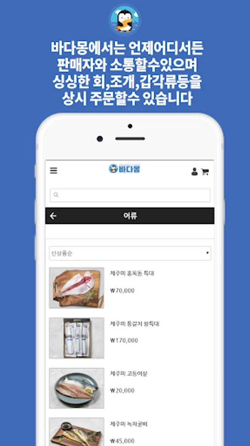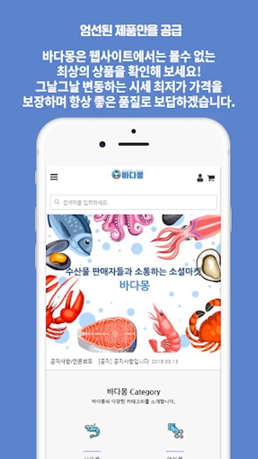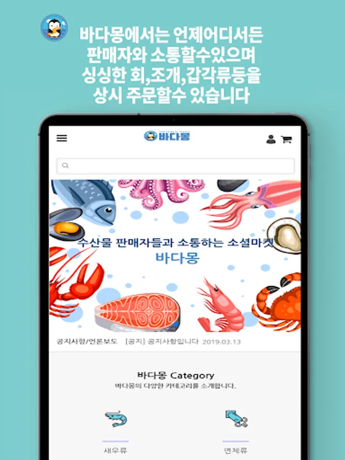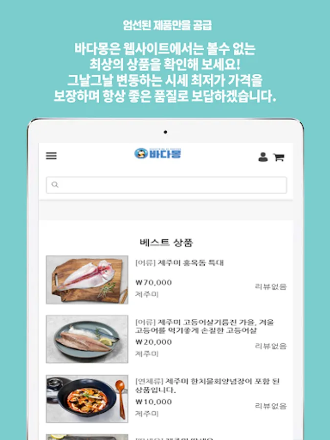 Product shopping cart function, payment function, seafood price delivery, product search function, event specials / planning exhibition
