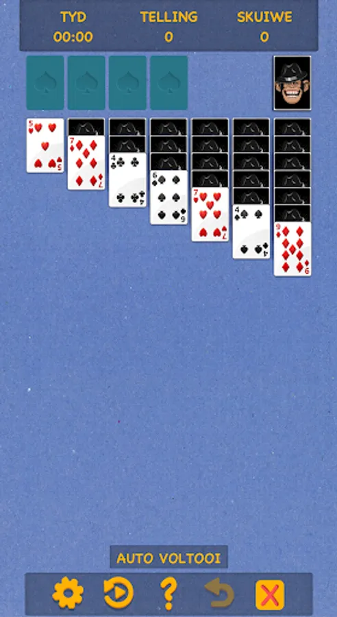 BoereMafia Solitaire is an Afrikaans themed card game for everyone. It is based on the popular card game spider solitaire's rules. The game provides statistics and a variety of choices regarding card jacket choices and different background color choices. The game will drive away those bored times in your life! There is no shopping or advertising in the game.