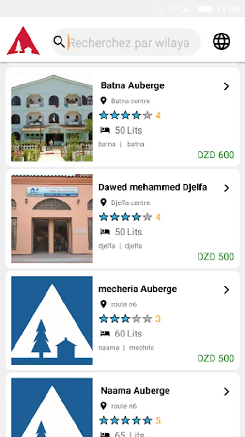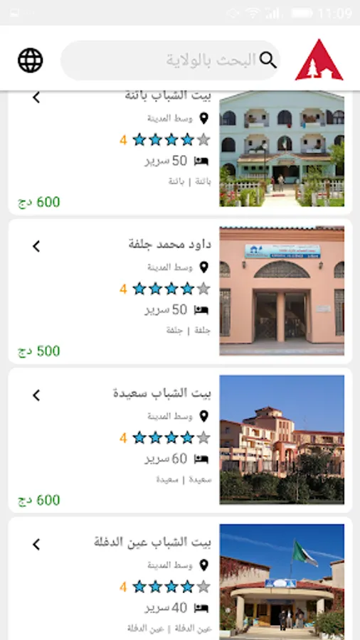 Peace be upon you. Our application displays most of the youth hostels in Algeria by all possible standards