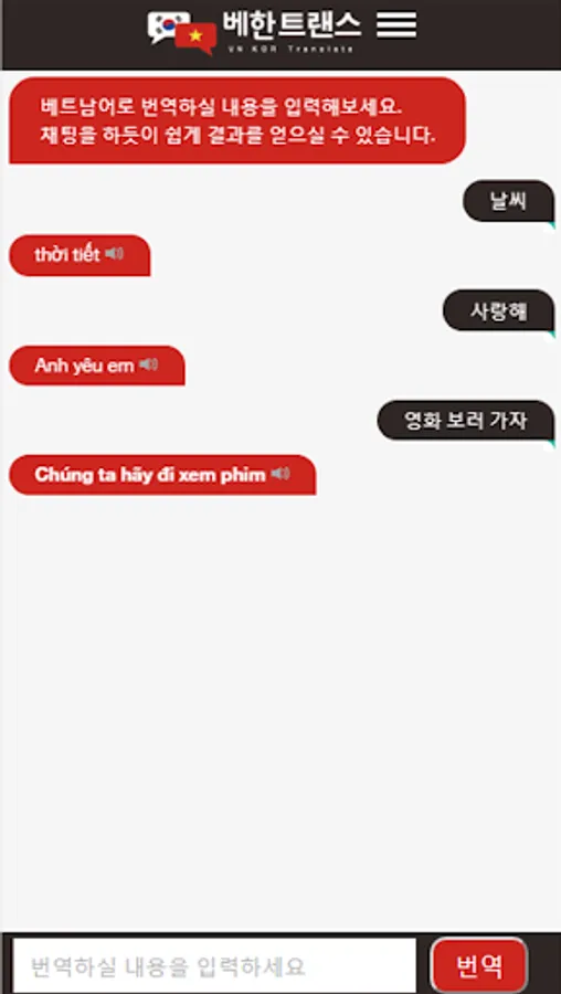 ▶ Chat-type Korean-Vietnamese interpretation service is provided to users.