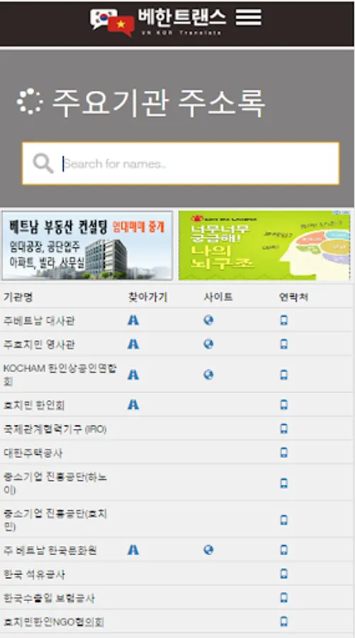 ▶ Vietnam Korean address book is provided.