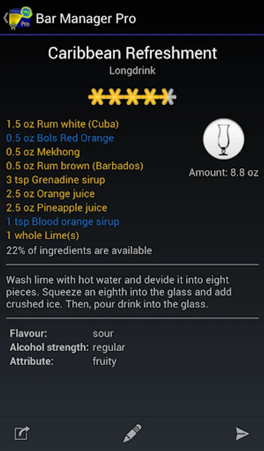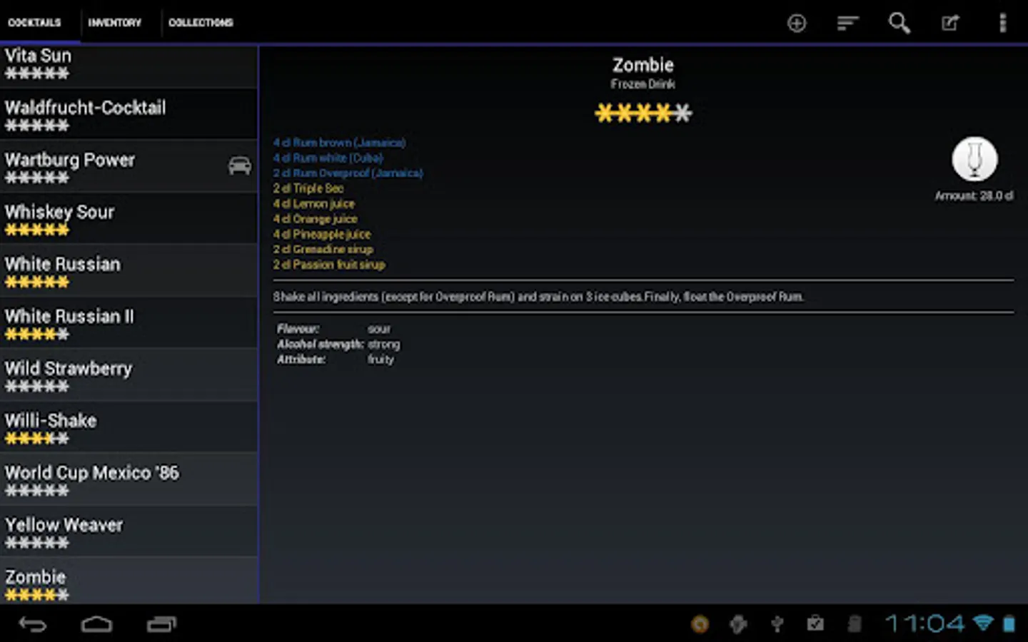 If you like an app with a lot of classic, well-known or simply delicious cocktail recipes and if you furthermore want to manage your bar inventory the Bar Manager is exactly what you’re looking for. The Bar Manager – Cocktail App unites a large cocktail database with a useful bar inventory management. The database of Bar Manager – Cocktail App consists of over 500 selected cocktails and even cocktail collections for special events like Christmas, New Year’s Eve, Halloween and St. Patrick’s Day.