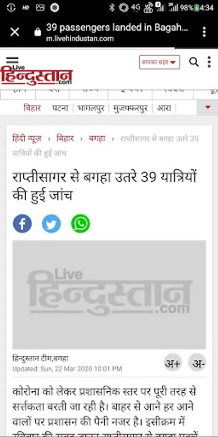 This Bagaha News App collects news from different News websites like Hindustan News Paper, Dainik Jagran, Zee News Bihar Jharkhand ,News18,Yupp Tv & more