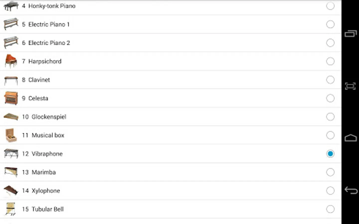 This is not a simple "Piano Keyboard", because it supports 128 musical instruments, including Piano, Dulcimer, Accordion, Harmonica, Guitar, Bass, Violin, Trumpet, Sax, Flute, Banjo, Tinkle Bell, etc.