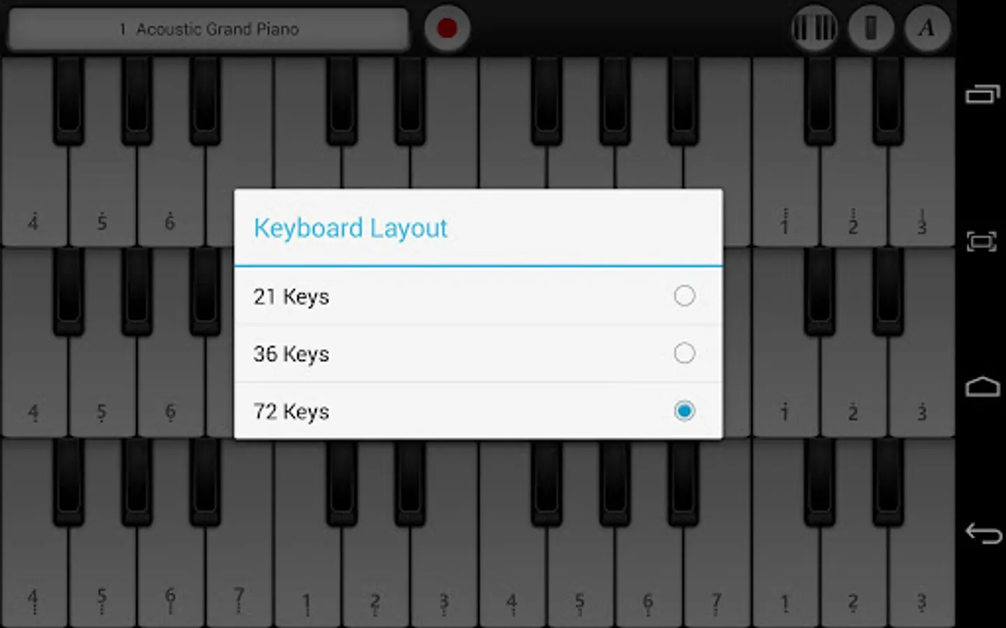 - 3 keyboard layouts: 21 Keys, 36 Keys and 72 Keys.